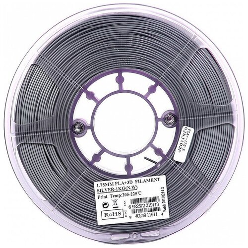 Катушка PLA+ ПЛА+ пластика для 3д принтера ESUN 1.75 мм 1кг, серебряная