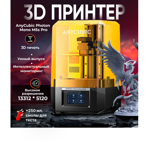 3д принтер ANYCUBIC Photon Mono M5s Pro, 200х223х127, SLS, ЖК-дисплей, 300 мм/сек скорость печати