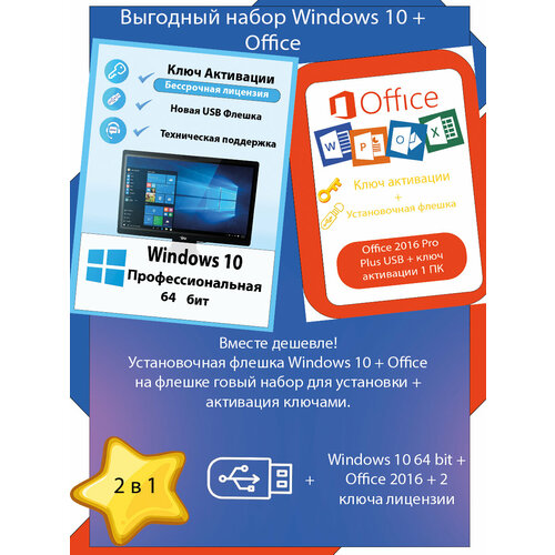 Выгодный комплект Windows 10 Pro+Office 2016 на USB флешке на Русском языке