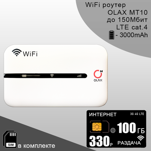 Комплект для интернета и раздачи, 100ГБ за 330р/мес, роутер OLAX MT10 + сим карта