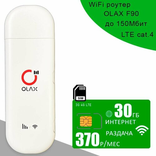 Беспроводной 3G/4G/LTE модем OLAX F90 I сим карта с интернетом и раздачей, 30ГБ за 370р/мес