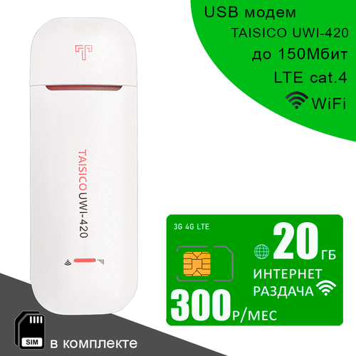 Беспроводной 3G 4G LTE модем TAISICO UWI-420 + cим карта с интернетом и раздачей 20ГБ за 300р/мес