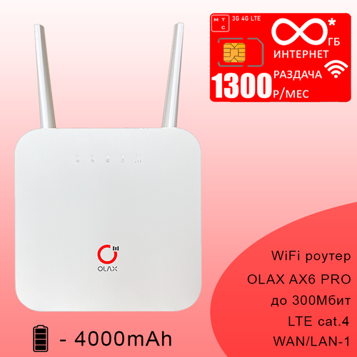 Комплект с безлимитным* интернетом и раздачей за 1300р/мес I Wi-Fi роутер OLAX AX6 PRO со встроенным 3G/4G модемом I сим карта МТС