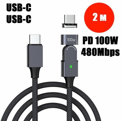 Магнитный поворотный кабель PALMEXX USB-C to USB-C, PD 100W, длина 2м