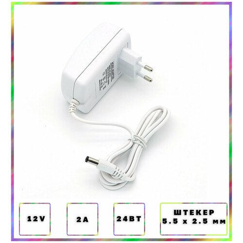 Блок питания (сетевой адаптер) универсальный, 12В 2А (12V/2A), штекер 5.5x2.5мм, белый