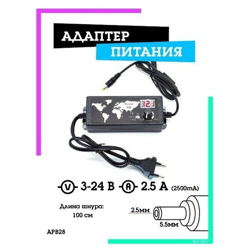 Адаптер питания универсальный (3-24В, 2500mA, 5,5mm) OT-APB28 Орбита