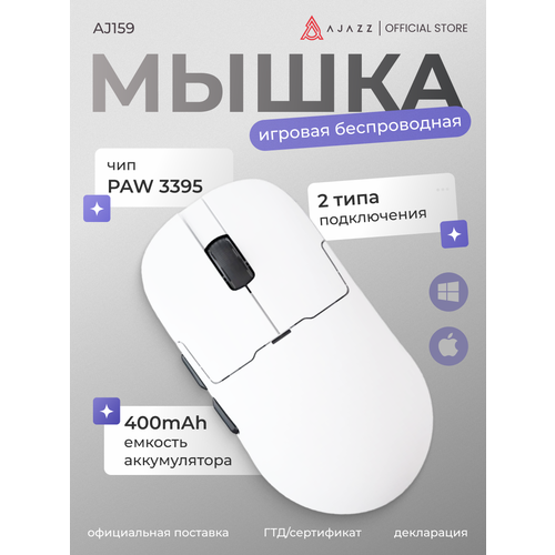 Игровая беспроводная мышь AJAZZ AJ159 / 2 режима подключения / Белая