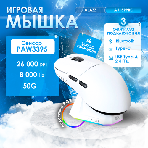 Игровая беспроводная / проводная мышь AJAZZ AJ159 PRO, PAW3395, 8000 Гцс док-станцией