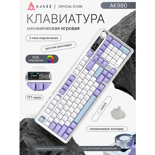 Цены на AJAZZ AK980 Механическая клавиатура трехрежимная, беспроводная игровая с экраном, 2.4g/Bluetooth/проводное подключение фиолетовый, черный матовый в г. Пермь