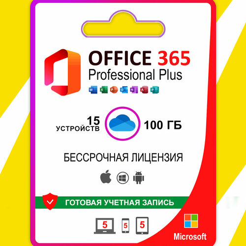 Аккаунт Microsoft Office Pro Plus 365, для 15 устройств, 32-64 бит, срок гарантии 3 месяца, (Win-Mac-iOS)