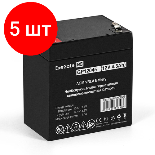 Комплект 5 штук, Батарея для ИБП ExeGate GP12045 (12V 4.5Ah, клеммы F1)(EX282960RUS)