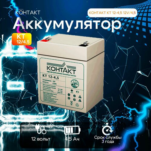 Аккумулятор Контакт КТ 4.5-12 12В 4.5Ач (12V 4.5Ah) для детского электромобиля, ИБП, аварийного освещения, контрольно-кассовых терминалов, весов, GPS оборудования, для электрических скутеров.