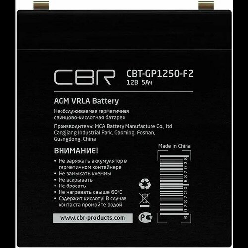 CBR Аккумуляторная VRLA батарея CBT-GP1272-F1 (12В 7.2Ач), клеммы F1