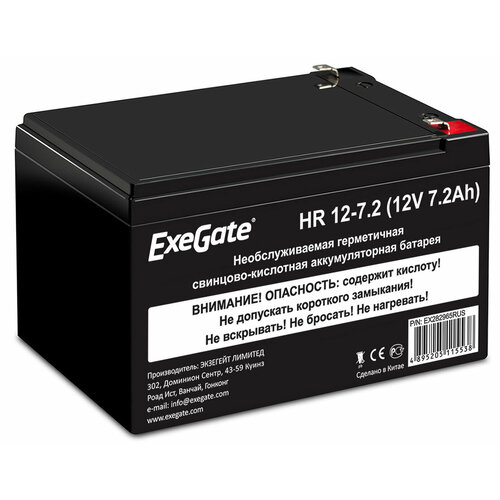 Exegate EX282965RUS Exegate EX282965RUS Аккумуляторная батарея ExeGate HR 12-7.2 (12V 7.2Ah), клеммы F2