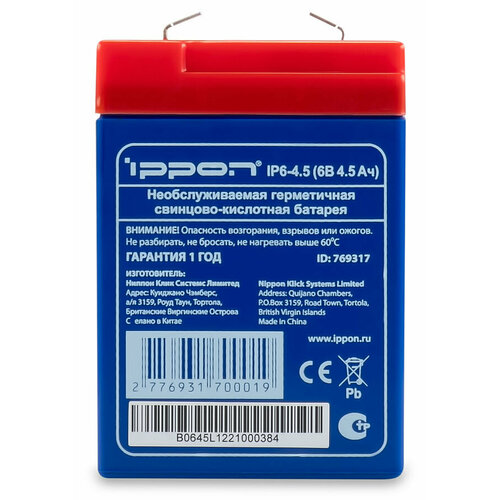Аккумуляторная батарея для ИБП Ippon IP6-4.5 6В, 4.5Ач [769317]