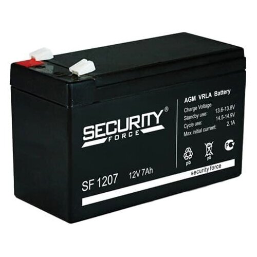 Аккумулятор Security Force SF 1207 12В 7Ач (12V 7Ah) для ИБП и UPS, аккумулятор для детского электромобиля, мотоцикла, эхолота, фонарика, ОПС, для пожарной сигнализации, для охранной сигнализации