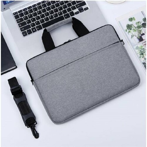 Сумка для ноутбука 14", полиэстер, крепкие ручки, плечевой ремень, серая