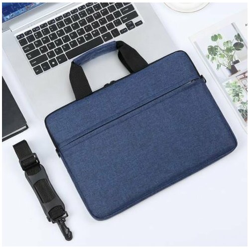 Сумка для ноутбука 14", полиэстер, крепкие ручки, плечевой ремень, синяя