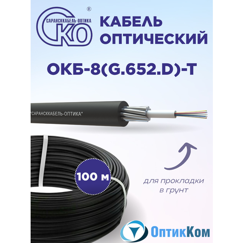 Кабель оптический Сарансккабель Оптика ОКБ-8(G.652D)-Т, 8 волокон, для прокладки в грунт, 100 м
