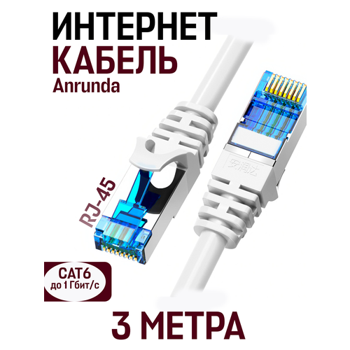 Кабель для подключения интернета LAN коммутационный шнур патч-корд витая пара Anrunda RJ-45 CAT6,1 гбит/c, 3 м