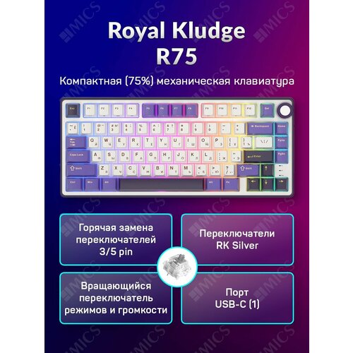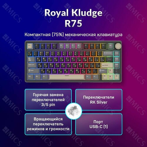Клавиатура ROYAL KLUDGE R75 механическая компактная (75%) 81 клавиша, проводная, Gasket Mount, цвет Phantom (switch RK Silver)