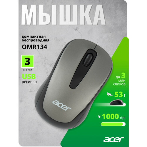 Бепроводная мышь Acer OMR134 серый (1000dpi) USB (2 кнопки)