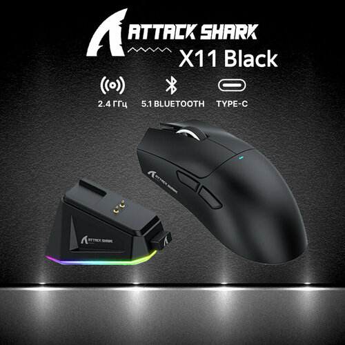 Мышь Attack Shark X11 Black USB, Радиоканал, Bluetooth