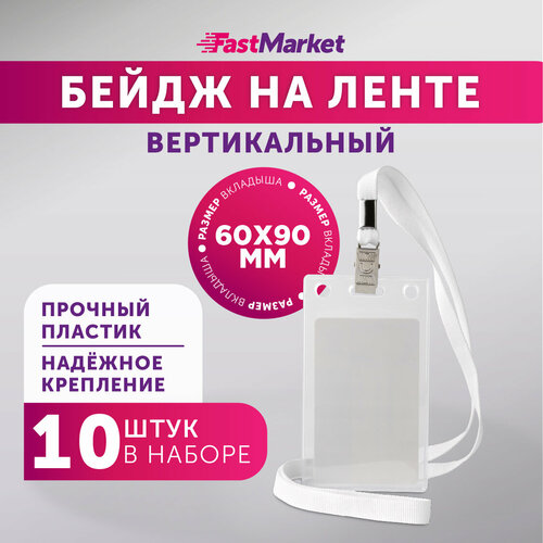 Бейдж на ленте вертикальный FastMarket, чехол для пропуска - 10 шт