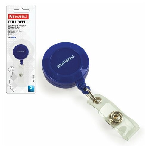 Держатель-рулетка для бейджей, комплект 30 шт, 70 см, петелька, клип, синий, в блистере, BRAUBERG, 235727
