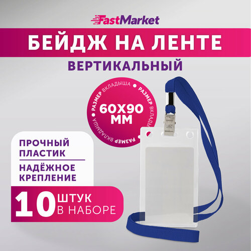 Бейдж на ленте вертикальный FastMarket, чехол для пропуска - 10 шт