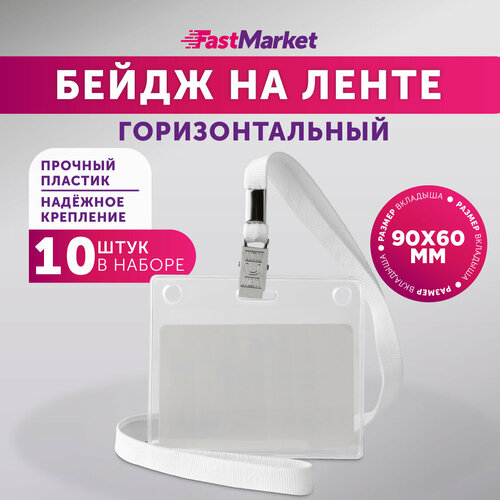 Бейдж на ленте горизонтальный FastMarket, чехол для пропуска - 10 шт