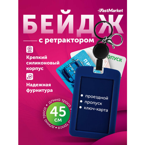Бейдж для пропуска FastMarket, чехол держатель пластиковый с рулеткой, бейджик для школьника