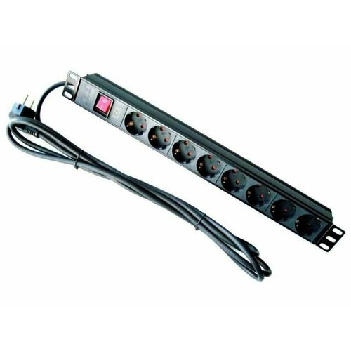 R-16-8S-V-440-3-B Блок розеток Rem-16 с выкл, 8 Shuko, 16A, алюм, 19", шнур 3 м, черный