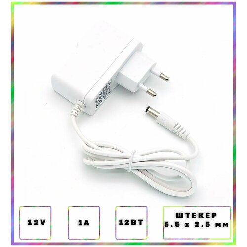 Блок питания (сетевой адаптер) универсальный 12В 1А (12V/1A), штекер 5.5x2.5мм, белый, плоский