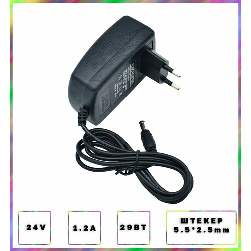 Блок питания (сетевой адаптер) универсальный 24В 1,2А (24V/1,2A), штекер 5.5*2.5mm