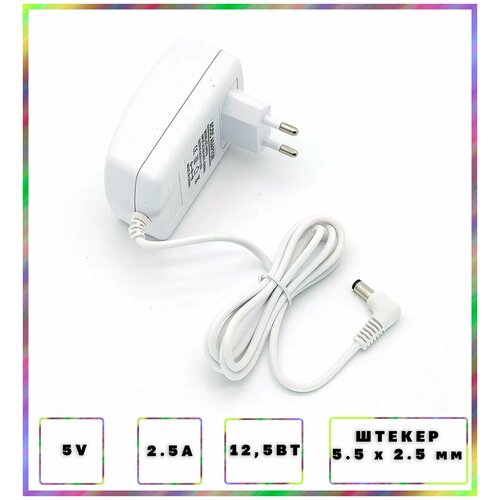 Блок питания (сетевой адаптер) универсальный 5В 2,5А (5V/2,5A), штекер 5.5x2.5мм, белый