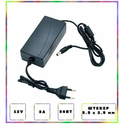 Блок питания (сетевой адаптер) универсальный 12В 3А (12V/3A), штекер 5.5*2.5мм, черный