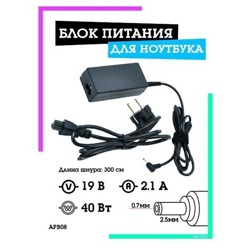 Адаптер питания для ноутбуков (2.1А/19В/2.5*0.7мм) OT-APB08 Орбита