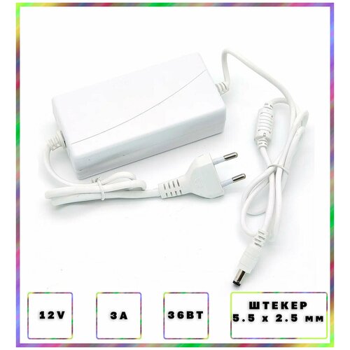 Блок питания (сетевой адаптер) универсальный 12В 3А (12V/3A), штекер 5.5*2.5мм, белый
