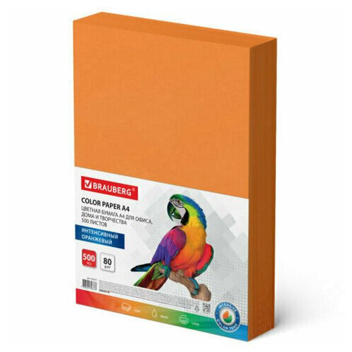 Бумага цветная BRAUBERG, А4, 80 г/м2, 500 л, интенсив, оранжевая, для офисной техники