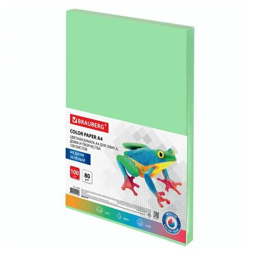 Бумага цветная BRAUBERG А4 80 г/м2 100 л. медиум зеленая для офисной техники, 3 шт