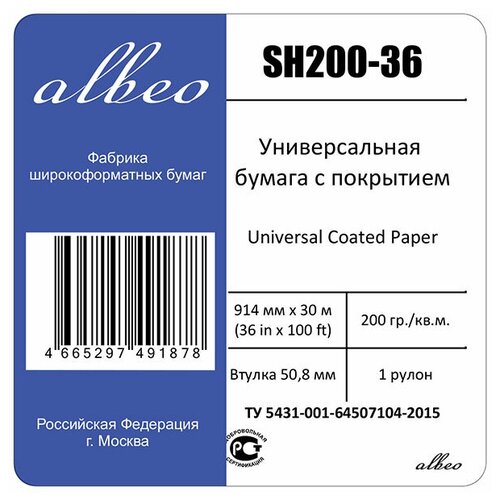 Бумага для плоттеров универсальная с покрытием А0+ Albeo InkJet Super HeavyweightCoated Paper-Universal 914мм х 30,5м, 200г/кв. м, SH200-36