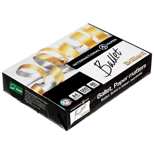 Бумага офисная А4, 80 г/м2, 500 л, марка А, BALLET BRILLIANT, Россия, 165% (CIE), 110461