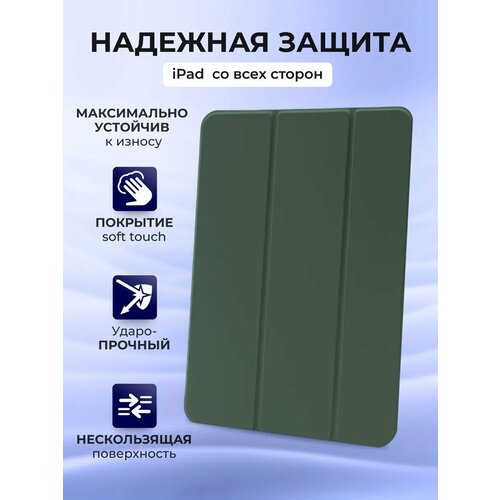 Чехол на iPad Air 11 M2 Air 11 M3 Air 4 Air 5 Smart Folio, темно-зеленый, с защитой камеры и soft touch покрытием