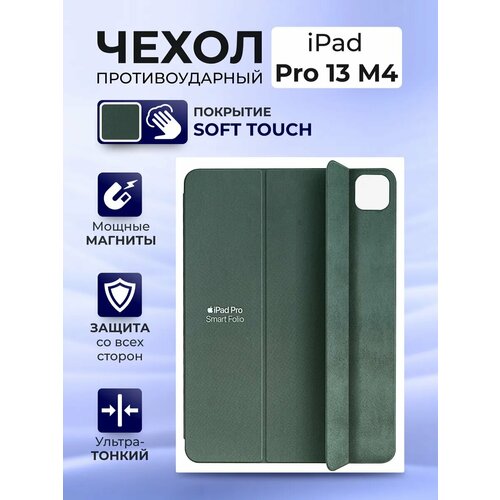 Чехол для iPad Pro M4 13 дюймов (2024), чехол-книжка Smart Folio для Apple, темно-зеленый