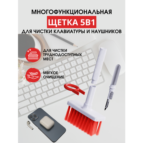 Щетка для чистки клавиатуры и наушников, Щетка 3 в 1, красная