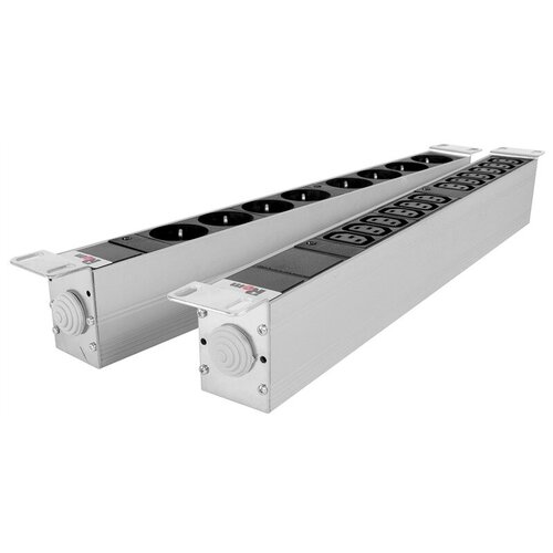 Блок розеток Rem-10 без шнура с инд, 6 Schuko, 5 IEC 60320 C13, вход IEC 60320 C14, 10A, алюм, 19"