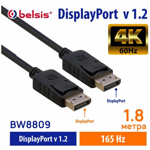 Кабель Belsis DisplayPort - DisplayPort v1.2 75 Гц 4K/1.8 метра (BW8809)