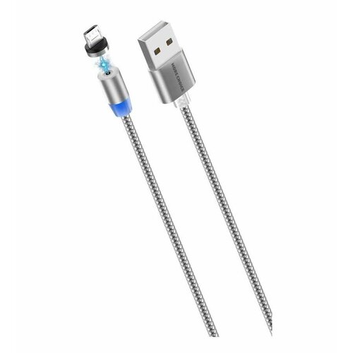 Дата-кабель More choice Smart USB 3.0A для micro USB Magnetic K61Sm нейлон 1м (Silver)