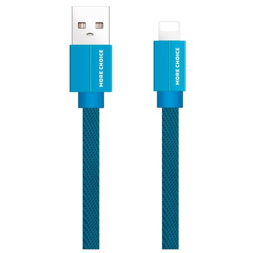 Дата-кабель USB 2.1A для Lightning 8-pin плоский More choice K20i нейлон 1м Blue